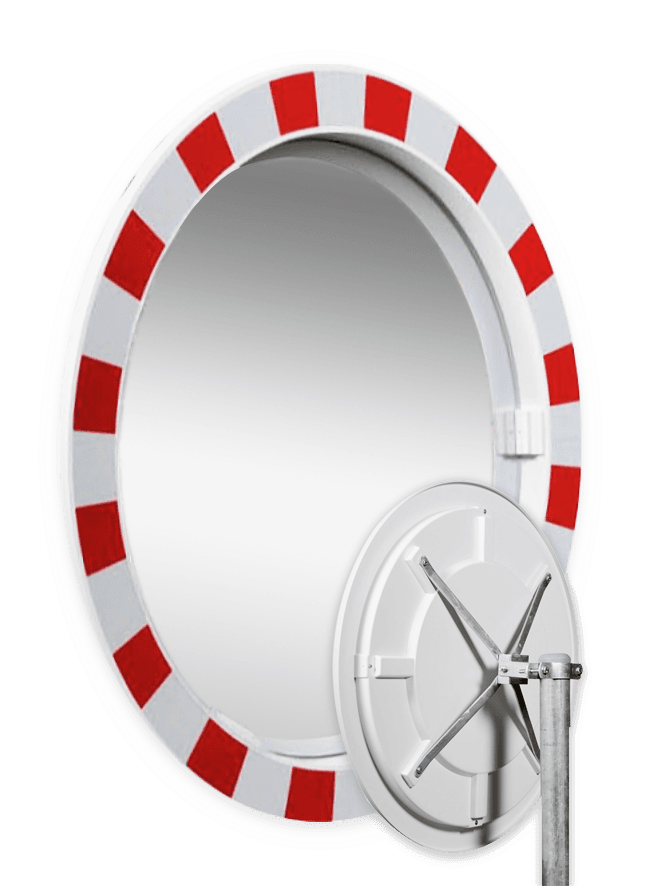 Verkehrsspiegel aus Acryl – rund 800 mm – mit rot/weißem Rahmen